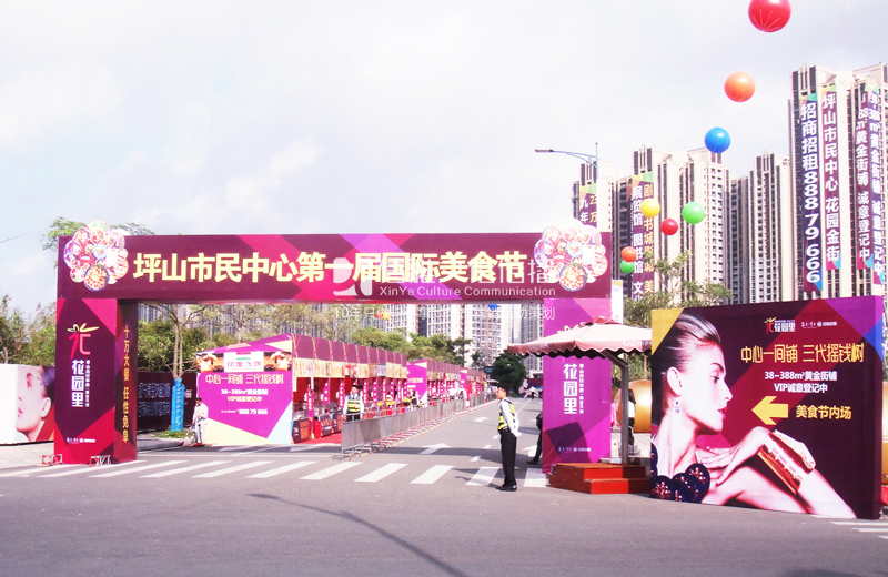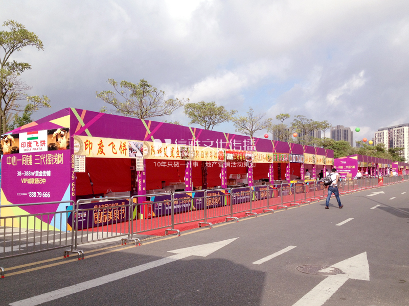 美食節為期10天,信雅文化作為此次美食節的服務商,參與了此次活動的整體活動策劃、活動執行、場地物料搭建、路線劃分、人員組織分配、安全隱患等細節。現場設置了30多個美食商鋪,調動了信雅文化20多位執行人員,劃分了3個執行小組,共同完成了這次大型美食節現場執行、場地搭建工作。