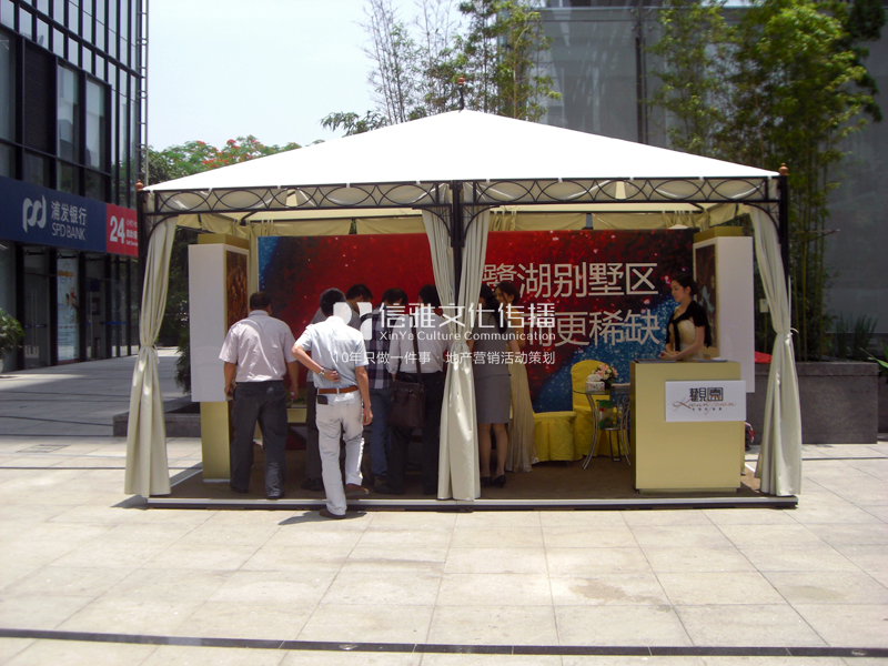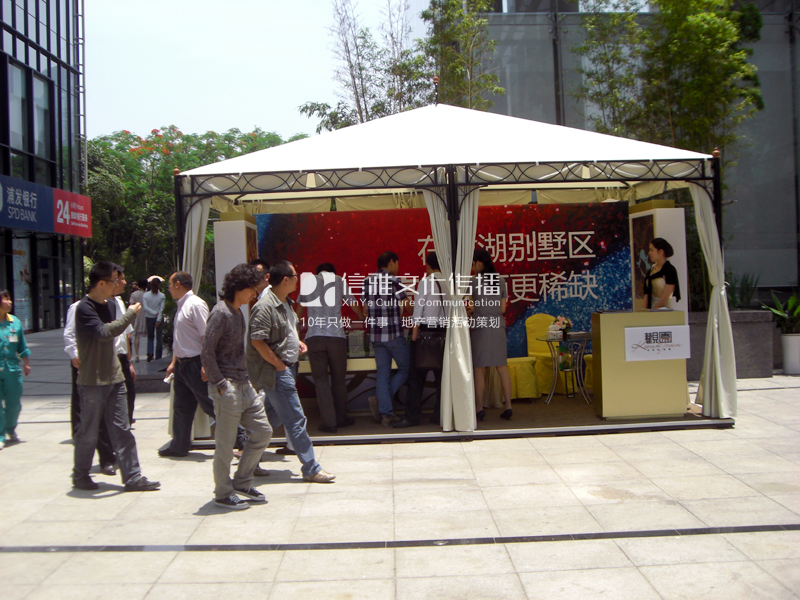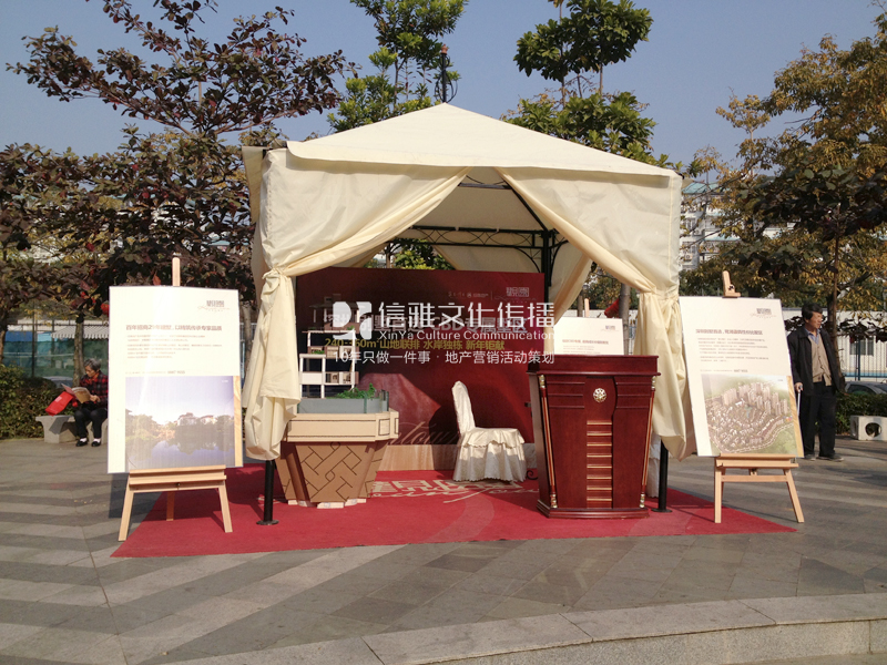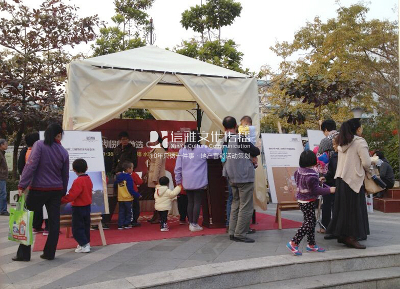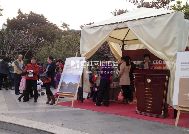 信雅文化將房地產項目以社區巡展型式現場展示、咨詢、填寫意向客戶記錄等形式,在社區主要通道等人流高峰場所配合以互動暖場的一種新型項目推廣形式。它不僅具有傳統廣告宣傳作用,更能與目標人群做深度溝通,及時掌握目標人群的反饋情況并能直接帶動銷售。
