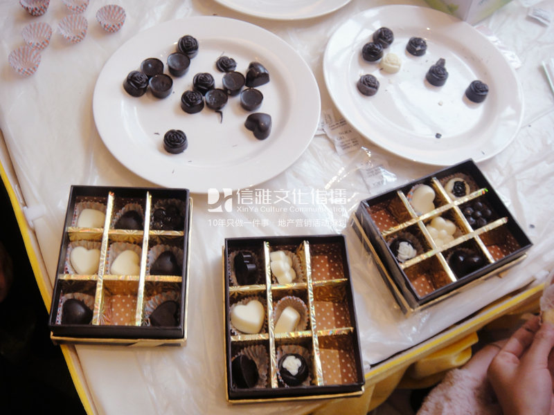 信雅文化參與了本場活動的全程策劃與執行工作,活動前,我們通過對樓盤信息的深圳了解,針對樓盤的特色做了一系列具有吸引力有效營銷的周末暖場活動方案。本次活動主題為“濃情七月·相約觀園”巧克力diy活動在營銷中心濃情上演,首先由老師指導制作樣品陳列參考并講解制作方法,接著客戶可以在老師的指導下親自進行巧克力制作。與此同時,現場還精心備有水果點心,供客戶休憩品嘗。一種美味,融化在舌尖上的感覺如絲一樣滑爽,閉上眼睛,香醇柔滑的味道浸潤到心田,如愛情的香甜,如生活的醇厚,如時光的綿長,這就是巧克力的美妙感受,細膩的質感帶給人喜悅和甜蜜,與家人一起體驗,把這一份甜蜜贈予自已所愛的人,加入自己的生活,讓這一份濃濃的甜蜜融入到客戶心里。一起將DIY濃情美味的巧克力,把甜蜜和歡樂帶回家!