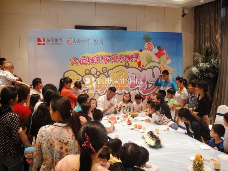 周末暖場(chǎng)均以親子為主打內(nèi)容,信雅文化團(tuán)隊(duì)為大運(yùn)城邦精心組織與策劃了一場(chǎng)親子水果DIY活動(dòng),兩天營(yíng)銷(xiāo)中心吸引了逾百人參加,現(xiàn)場(chǎng)氣氛火爆。希望通過(guò)親子暖場(chǎng)活動(dòng)吸引孩子關(guān)注,從而帶動(dòng)家長(zhǎng)的參與,通過(guò)家長(zhǎng)兒童的互動(dòng)行為,帶動(dòng)現(xiàn)場(chǎng)銷(xiāo)售。在稍嫌酷熱的四月,不少業(yè)主贊嘆工作人員很貼心,在炎熱的夏日為她們帶來(lái)了一絲清涼。活動(dòng)現(xiàn)場(chǎng),眾多業(yè)主與客戶紛紛參與到水果diy活動(dòng)中去,在水果雕刻師傅的認(rèn)真指導(dǎo)下,很多小朋友與家長(zhǎng)一起投入水果雕刻的藝術(shù)中去,1小時(shí)過(guò)去,大家手中原有的蘋(píng)果、香蕉等變成了一件件精美的藝術(shù)作品。活動(dòng)結(jié)束時(shí),還有不少業(yè)主意猶未盡,希望大運(yùn)城邦以后能多次舉辦此類(lèi)活動(dòng)。咨詢電話:0755-83928949